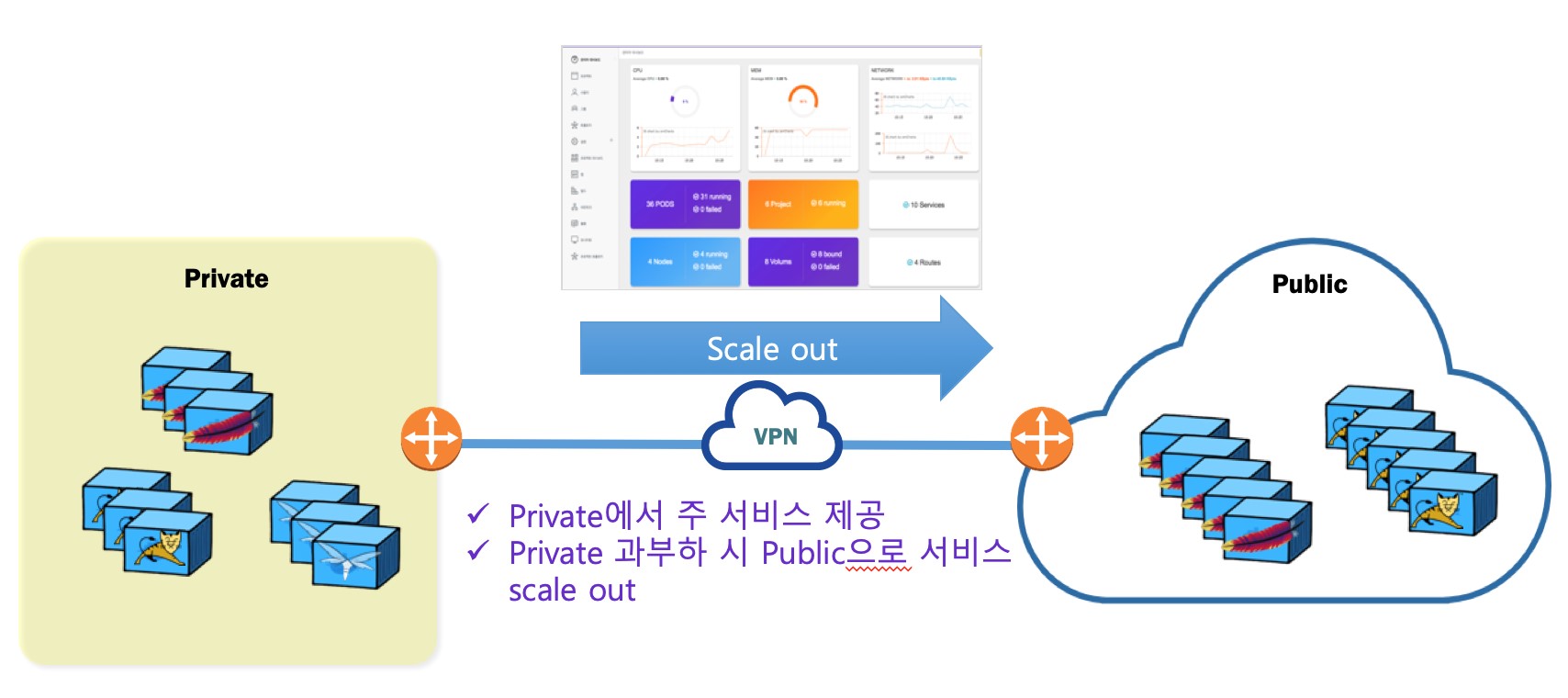 | Hybrid 클라우드 실현 | - Private Cloud에 구축하여 Public Cloud로 즉시 이전 가능 |